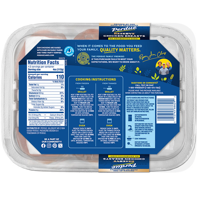 PERDUE® RESERVE™ Frozen Boneless Skinless Chicken Breast 1.125 lbs, Tray