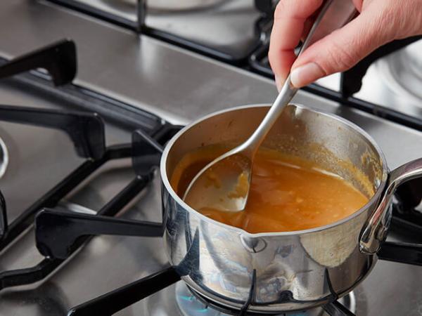 In a small saucepan heat the rice vinegar, the apricot marmalade, and the Dijon mustard until melted and combined. Remove from heat and let cool.