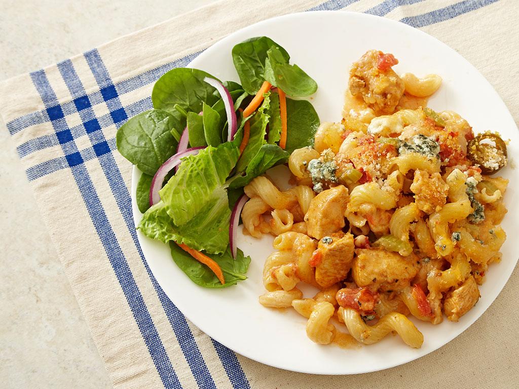 Preheat the oven to 400°F. Spray a 9- by 13-inch casserole or baking dish with cooking spray. Pour the pasta into the prepared baking dish and top with Panko crumbs and blue cheese crumbles. Bake in a preheated oven for 10 to 15 minutes until bubbly and golden on top. Let the casserole rest for 5 to 7 minutes before serving. Serve with a side salad for a complete meal.
