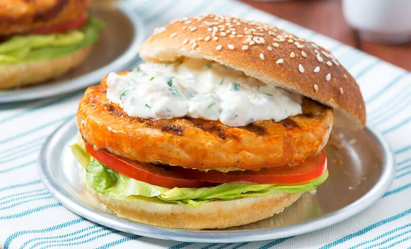 Buffalo Turkey Burgers with Blue Cheese Dressing