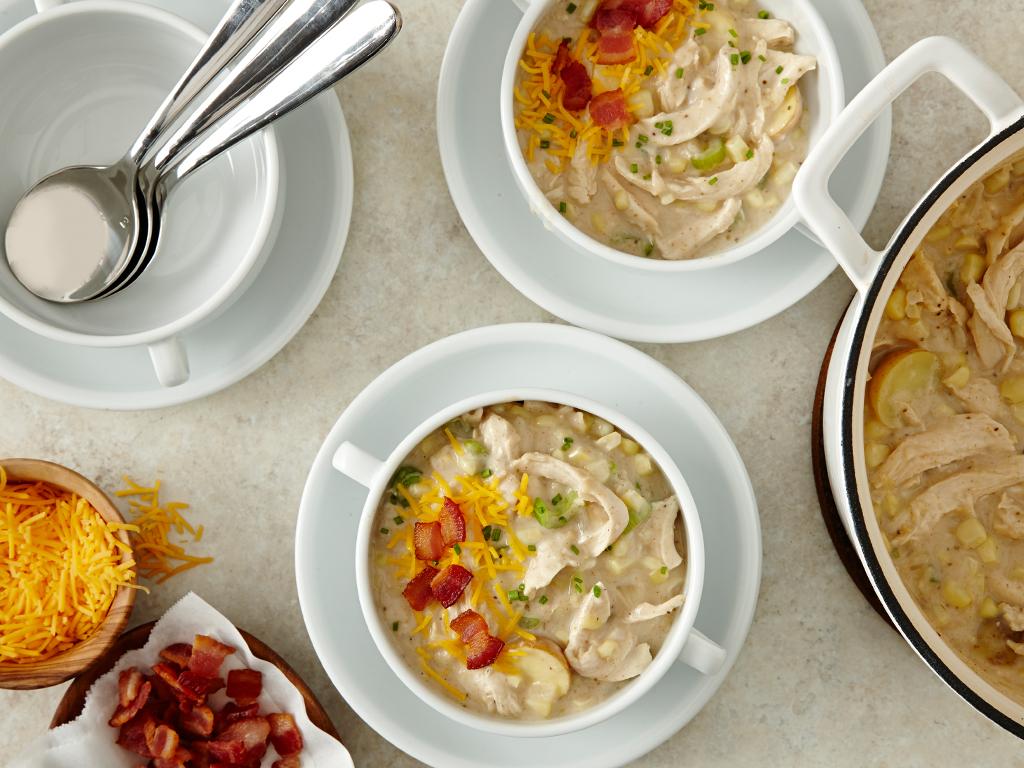 For extra creamy chowder, use an immersion blender to puree 1/3 of the base before you add the chicken. This recipe is great for a crowd and would easily double.