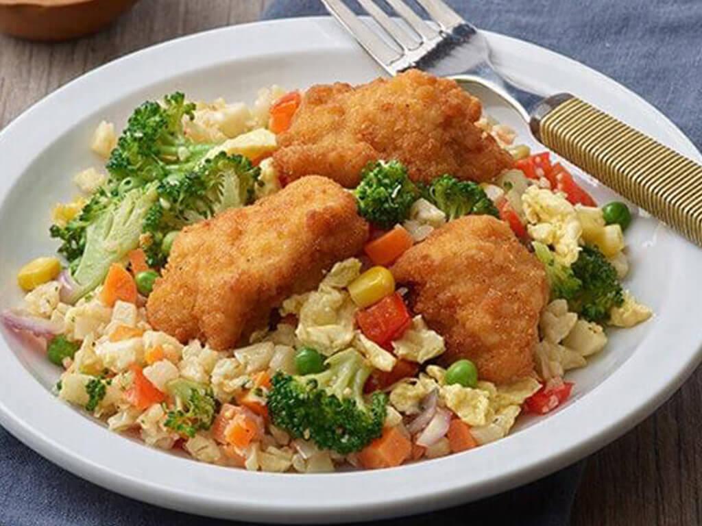 0 ReviewsChicken Chunks and Cauliflower "Fried Rice" with Sweet Corn, Peas, Onions and Broccoli