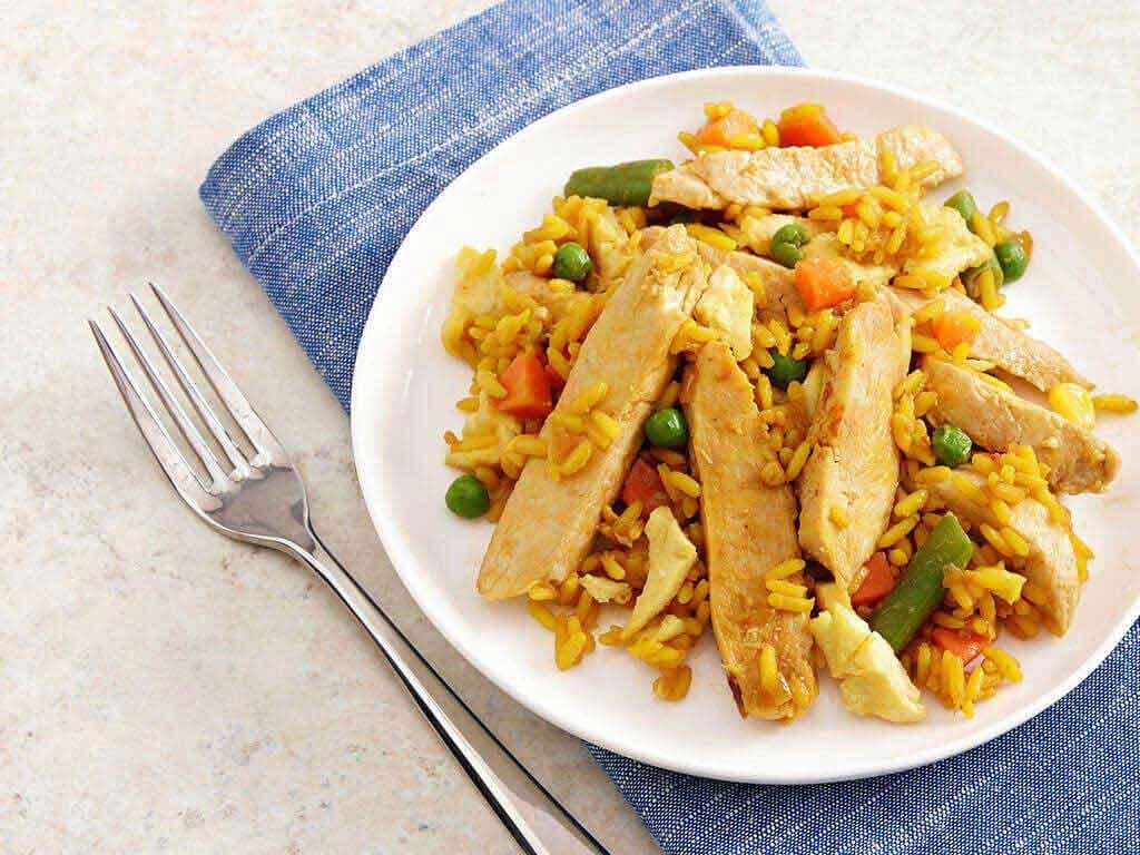 If you prefer to use fresh vegetables, substitute frozen ingredients with 1 medium carrot peeled and diced small; 1 ear of corn, kernels removed from cob; 1/3 cup fresh peas and 1/3 cup stemmed and roughly chopped fresh green beans.