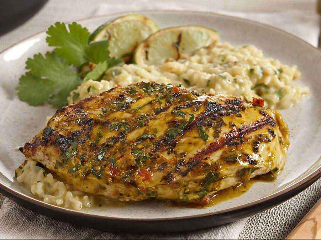 In a saucepan or on a grill, brown the chicken breasts on both sides. Spoon the Chimichurri on top of the chicken and serve.