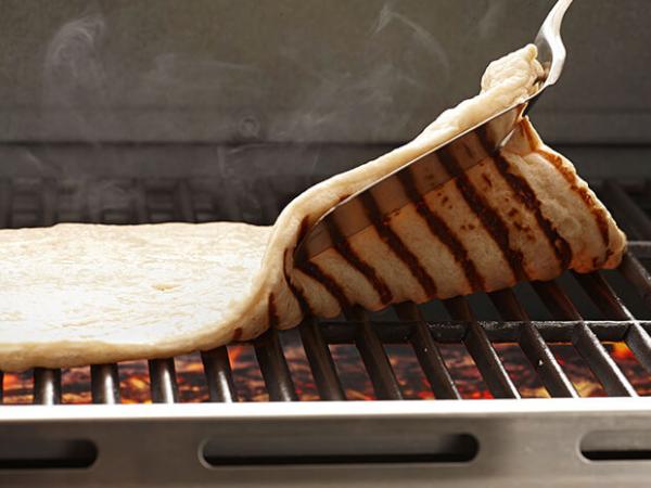 Onto a floured counter, roll the pizza dough into a 12-inch round or rectangle.