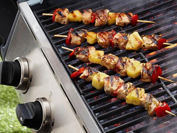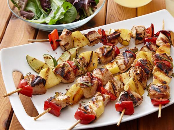 If using wooden skewers, soak in water for 30 minutes to keep skewers from burning on the grill. If using metal skewers, remember your chicken will cook faster because the metal will conduct the heat and cook the chicken cubes from the inside as well as the grill heat cooking the chicken from the outside.