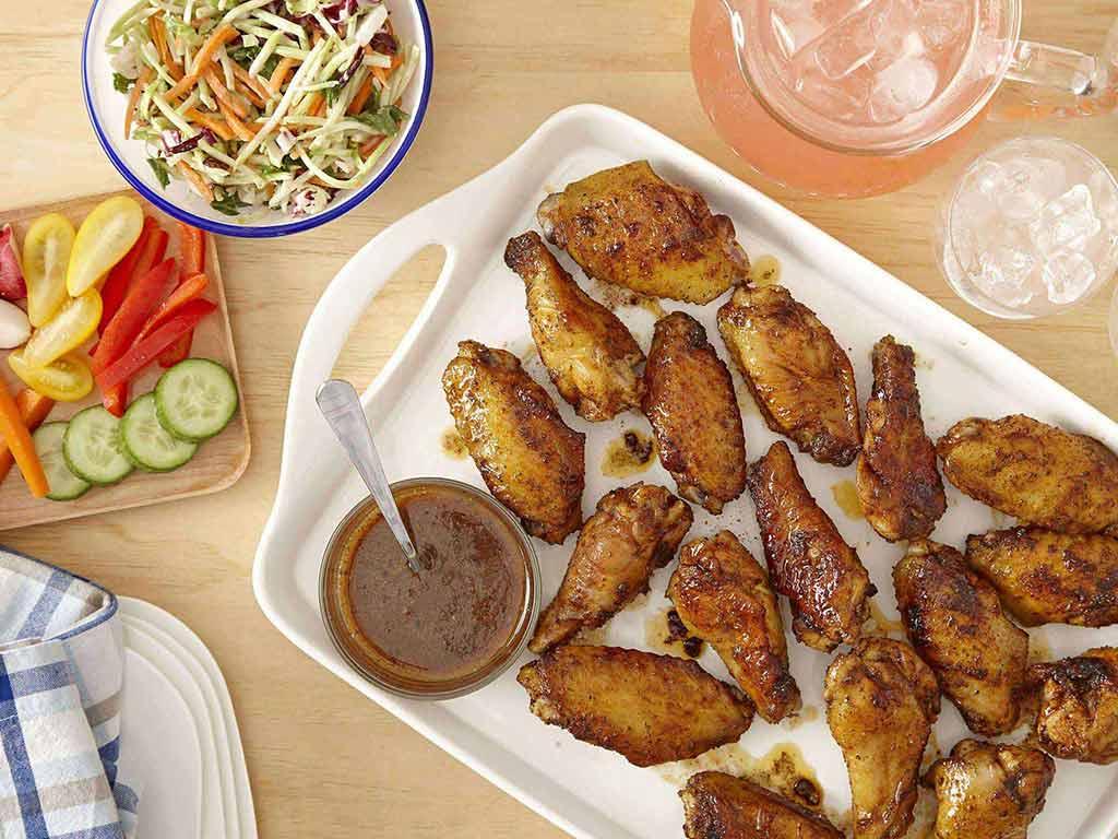 Season chicken wings with Chinese five spice powder and salt.