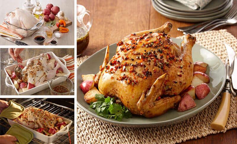 Cover chicken with with foil, and cook for 30 minutes, basting with the soy sauce mixture and pan juices every 10 minutes.