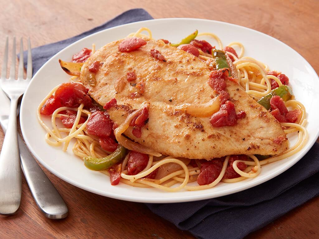 Nestle the chicken into the tomato sauce and reduce the heat to medium low. Simmer for about 2 to 3 minutes until chicken is heated through and sauce has thickened. Serve Skillet Chicken Cacciatore with pasta if desired.